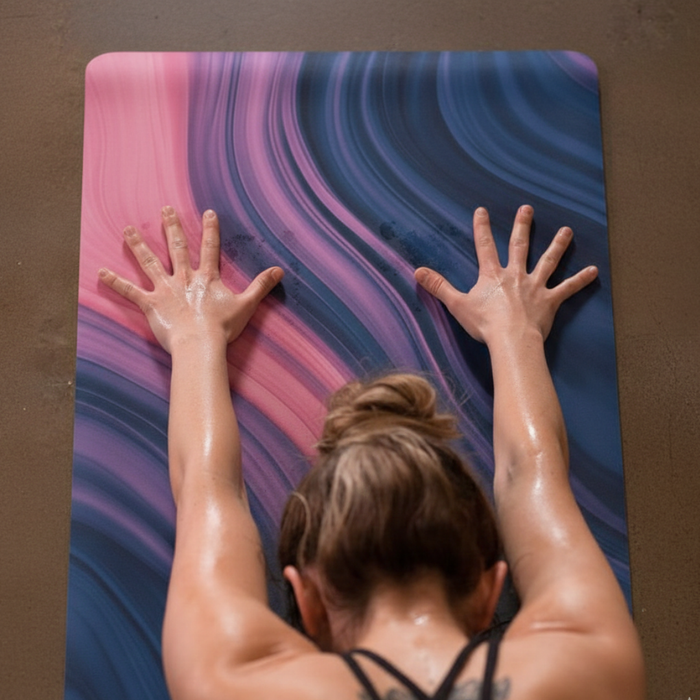 Absolutely! Unlike standard mats that become slippery with sweat, MIYRA is engineered to grip more as moisture increases.
